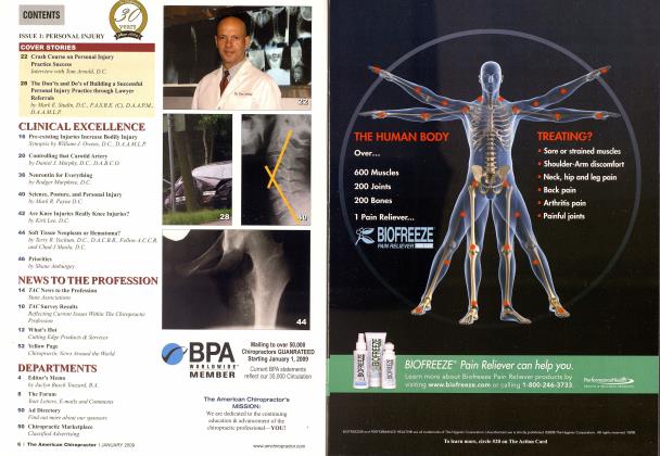[ CONTENTS ] ISSUE 10: WORKING WITH INSURANCE TO GET PAID FEATURE STORIES 14 Market Review INSURANCE, CODING, SOFTWARE, DOCUMENTATION, TOOLS 24 Coding The Right Way INTERVIEW WITH KATHY MILLS CHANG CLINICAL EXCELLENCE 32 Workers' Compensation BY PRESTON DIAMOND 42 How to Get Paid With Insurance BY MARK STUDIN D.C., F.A.S.B.E.(C), D.A.A.P.M., D.A.A.M.L.P. 44 High Level Sports Programs Embrace Chiropractor BY ERIC PLASKER, D.C. 48 Better Records = Better Collections BY ERIC KAPLAN, D.C, F.A.I.M.A 54 Hurry up and slow down! BY HAL CALISCH 56 Lumbar Lordosis BY MARK R. PAYNE D.C. 60 McKenzie Spinal Rehab Methods in the Chiropractic Office BY RANDY REED, D.C, C.C.S.P. 64 Low Back Pain Leads to Lifestyle Changes BY JOHN DANCHIK, D.C, F.I.C.C, F.A.C.C. 66 Kinematics of Lateral Impacts and Seat Belt Liability BY WILLIAM J. OWENS JR, D.C, D.A.A.M.L.P. 70 Audit Proof Your Practice BY PAUL B. BINDELL, D.C. PROFITABILITY 20 Technology for Accountability BY STEVEN J. KRAUS, DC, DIBCN, CCSP, FASA 28 Personal Trainers Have it Right BY BHARON HOAG 36 The True "Cost" of Compliance BY JOHN DAVILA, D.C. 38 CCHIT: What is It to Me? BY MICHAEL FAILLA, D.C. NEWS OF THE PROFESSION 8 TAC Survey Results REFLECTING CURRENT ISSUES WITHIN THE CHIROPRACTIC PROFESSION 8 Forum YOUR LETTERS 10 What's Hot CUTTING EDGE PRODUCTS & SERVICES 12 TAC News of the Profession 18 An Open Letter to the Chiropractic Profession CALL FOR ACTION 52 A Healthcare System Divided Against Itself BY CHESTER A. WILK, D.C. 79 Chiropractic News Around The World DEPARTMENTS 4 From the Director's Desk BY JOSEPH P. BUSCH, B.A., D.C. 76 Seminar Circuit FCASHOW 78 Ad Directory FIND OUT MORE ABOUT OUR SPONSORS 78 Chiropractic Marketplace CLASSIFIED ADVERTISING