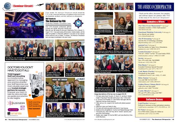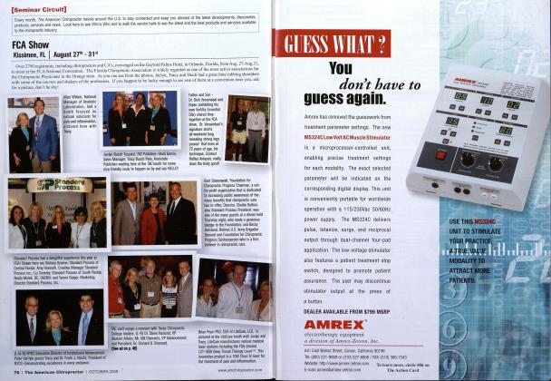 Every month, The American Chiropractor travels around the U.S. to stay connected and keep you abreast of the latest developments, discoveries, products, services and news. Look here to see Who's Who and to walk the vendor halls to see the latest and the best products and services available to the chiropractic industry. Nearly 1,500 attendees—alumni, their guests, students, prospective students, faculty and staff—enjoyed Palmer Homecoming 2009 on the Davenport Campus, Aug. 13-15. Alumni attendees earned up to 23 hours of continuing education credits, and there were special tracks for students and chiropractic office staff. A program packed with great presentations featured world renowned keynote speakers Bob Harper, fitness trainer on NBC's The Biggest Loser, NCMIC Group Inc. President Louis Sportelli, D.C., and best-selling author and Wall Street Journal columnist Jeffrey Zaslow. Attendees also took home leading edge advice from speakers such as Frank Sovinsky, D.C., presenting on "The Patient Centered Experience: A Plan for Thriving in Today's Economy;" Thomas O'Bryan, D.C., with "The Neurological and Musculoskeletal Complications of Gluten Sensitivity;" Sarah Farrant, D.C., on "The New Wellness Care for Newborns, Kids and Pregnant Women;" Christine Goertz, D.C., Ph.D., about "Translational Research in Chiropractic;" and Jason Yusavage, D.C., on "Pediatric Adjusting." In addition, nine new members were inducted as Fellows of the Palmer Academy of Chiropractic during Homecoming. (see ad on p. 15)