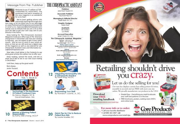 Contents Feature: Working with Insurance to Get Paid, Cash Practice Optimization Issue 10 14 Cash is King but Give Credit Where Credit is Due by Chip Hun/ikcr 20 Work OUT Appeals to Work UP Your Bottom Line by Kathy Mills Chang. MCS-P 26 ICD-10 and the Chiropractic Physician by Evan M. Gwilliam DC. CPC. NCICS. CCPC. CCCPC. CPC-L MCS-P. CPMA 36 STOPTHE INSANITY! How a Discount Medical Plan can Help you Develop a Sane Financial Policy and Avoid Problems by Ray Foxworth. DC. FICC. MCS-P 46 Dealing with Kids by Ogi Rcssel. DC 50 Chiropractor vs. Doctor vs. Doctor of Chiropractic? by Mark Studin. DC. FASBE(C). DAAPM. DAAMLP 56 Who Cares for the Caregivers? by Keving Wong. DC 60 Predicting Positive Outcomes in Neck Pain Cases by Mark Payne, DC Departments 8 News 9-12 What's Hot Chiro Supplies & Services Catalog Ad Directory & Readers Service Center Chiropractic News Around The World