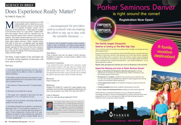 H crc"s a study from Spain published in February 2013 that should be of interest to a great mam chiropractors. Although nutrition certainly isn't my forte, occasionally an article comes along that I simply cant ignore. Since a very large percentage of the profession engages in some level of nutritional advice/treatment. I hope this will be of value. Following recent publication of a rat study that indicated differences in gut microbial concentrations at the time of type 1 diabetes onset, the authors designed a small human study to test their hypothesis that type 1 diabetes in humans could also be linked to specific microbes in the human gut. This was a case-control study that compared 16 healthy children to 16 with type 1 diabetes. Fecal bacteria composition was analyzed on all children. When compared to healthy children, the diabetic subjects showed significantly decreased quantity of Actinobactcria and Firmicutcs strains. Additionally the quantity of Bac-tcroidctes organisms was significantly increased, thereby further altering the ratio between strains. At the genus level. Clostridium. Bacteroides. and Vcillon-ella were all increased, while Lactobacillus. Bifidobacte-rium. Blautia coccoidcs/Eubactcrium rectale and Prcvotclla were all decreased. • The number of Bifidobactcrium and Lactobacillus correlated negatively with blood glucose levels (i.e.. when bacterial levels were low. plasma glucose tended to be high). The authors claim this is the first study to show "compositional changes in gut microbiota" associated with diabetes. A previous study by Giongo ct al. observed that the Firmicutcs to Bactcroidctcs ratio was already changing during the first six months after birth before the development of type 1 diabetes. This previous study showed "successive decline in Firmicutes and an increase in Bacteroidctcs number in the gut microbiome over time until the children became diabetic." Take Home: Type 1 diabetes appears to be associated with changes in the populations of gut microbes. The authors conclude: "The quantity of bacteria essential to maintain gut integrity was significantly lower in the children with diabetes than the healthy children. These findings could be useful for developing strategics to control the development of type 1 diabetes by modifying the gut microbiota." Reviewer's Comments: On the downside, it's a relatively small study and certainly doesn't firmly establish causality in and of itself. On the upside, a causal relationship looks more likely when considering the previous study by Giongo ct al. In practical terms, probiotic supplements generally arc pretty safe. I probably ought to point out that I'm not in the business of selling probiotics. but it seems to me that a good probiotic with the appropriate microbes might provide a bit of insurance, especially for at risk babies. That's my gut feeling, at least. Reviewer: Mark R. Payne. DC Reference: Gut microbiota in children with type 1 diabetes differs from that in healthy children: a case-control study Muni M. Lciva I, Gome/.-Zumaqucro JM. Tinahoncs FJ. Cardona F. SorigucrF, Qucipo-Ortuno M. BMC Med 2013 Fcb 21:11:46 Link to Full Text: http://www.ncbi.nlm.nih.gov/pmc/articles/PMC3621820/ Dr. Mark R Payne, Phenix City, AL is Editor of ScienceInBrief.com, a scientific literature review for busy chiropractors. He is also President ofMatlin Mfg Inc. a manufacturer of postural rehabilitation products since 1988. Subscription to ScienceInBrief.com is FREE to doctors of chiropractic and chiropractic students. Reviews of relevant scientific articles are entailed weekly to subscribers.