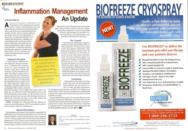 History and Subjective Complaints: A 24-year-old professional/international circuit tennis player presents with a right shoulder injury, 6 months post U.S. Open. Objective Findings: Decreased right shoulder flexion, abduction and external rotation. X-Ray: Absent 8-10 mm subacromial space, laterally rotated vertebral border of the right scapula, antetilted glenoid labrum. Diagnosis: Protracted laterally antetilted right scapula causing rotator cuff impingement syndrome. Treatment: Specialized manipulative decompression of involved pro-tracted/antetilted right scapula, medial-inferior sternoclavicu-lar joint and anterior-inferior medially rotated right humerus (Mally Technique) Nutrition: Anti-inflammatory vitamins (bromelain, papain, trypsin, chy-motrypsin, biotlavonoids) and vitamin B6. Rehab: 6 weeks of reconstruction and work hardening, rhomboid and deltoid strengthening. Addendum: Failed post-op impingement surgery is very high, with misdi-agnosis and connective tissue hyperplasia the highest cause of failure. Misdiagnosis leads to erroneous results and, in this case, permanent disability and loss of dominant shoulder motion. Post chiropractic extremity manipulation by Dr. Mally yielded a return to the tennis courts and a very excited world- class competitive athlete. EZS For more information. Dr. Mally can he reached by e-mail at mrnnillvdt doenuilly.com.